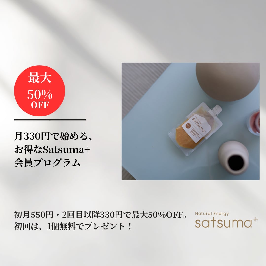 サツマプラスのサブスクリプション会員は、腸活ドリンク「satsuma+」を愛用されている方や、健康志向・美容意識の高い方に向けた会員限定サービスです。 入会することで、一般販売では手に入らない割引価格が利用できる「特別シークレットサイト」へアクセスできます。